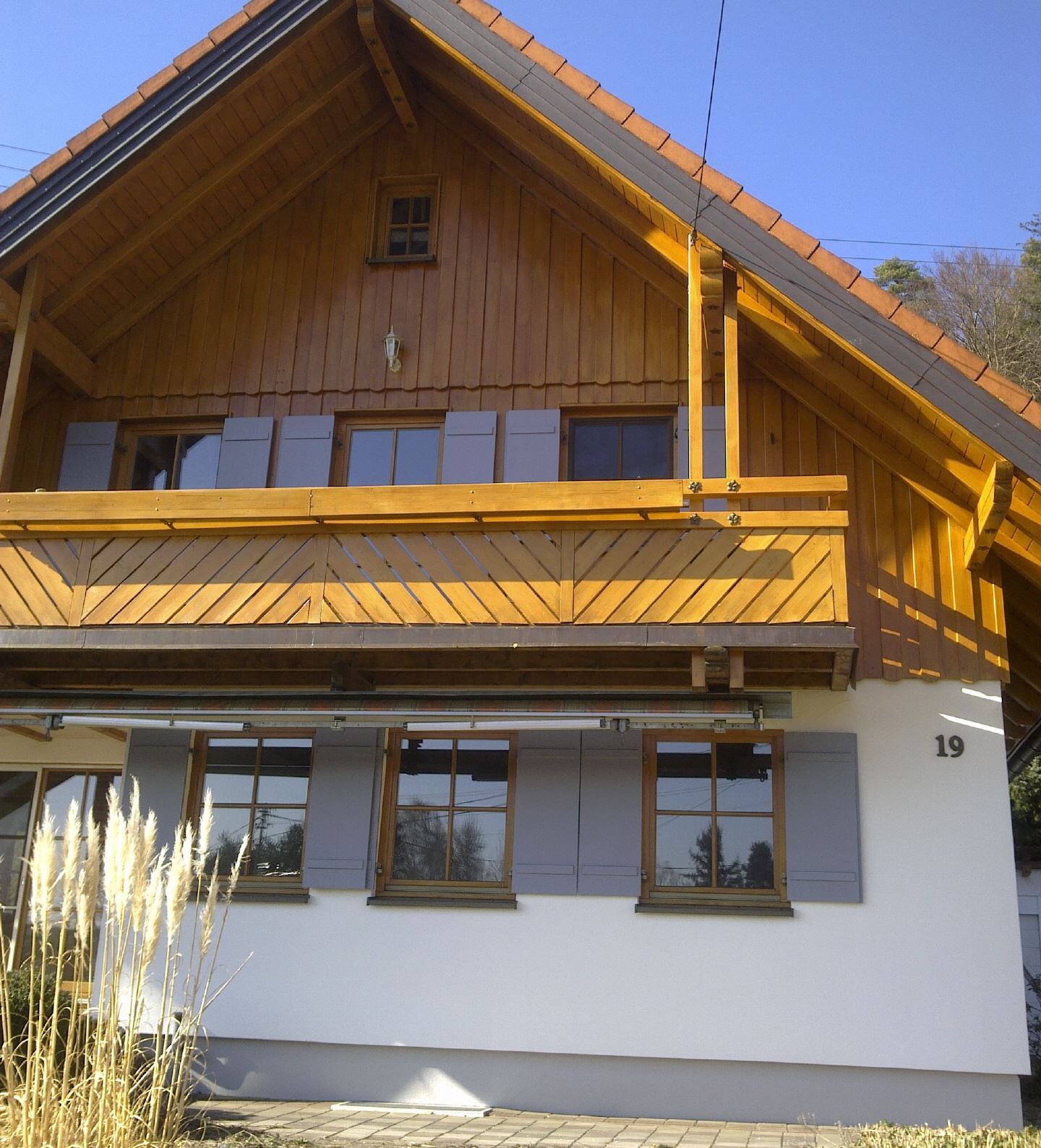 Allgemein gilt, daß lasierte Holzoberflächen nach 2-3 Jahren und deckende Holzfarbenbeschichtungen nach 5-6 Jahren renoviert werden müssen.